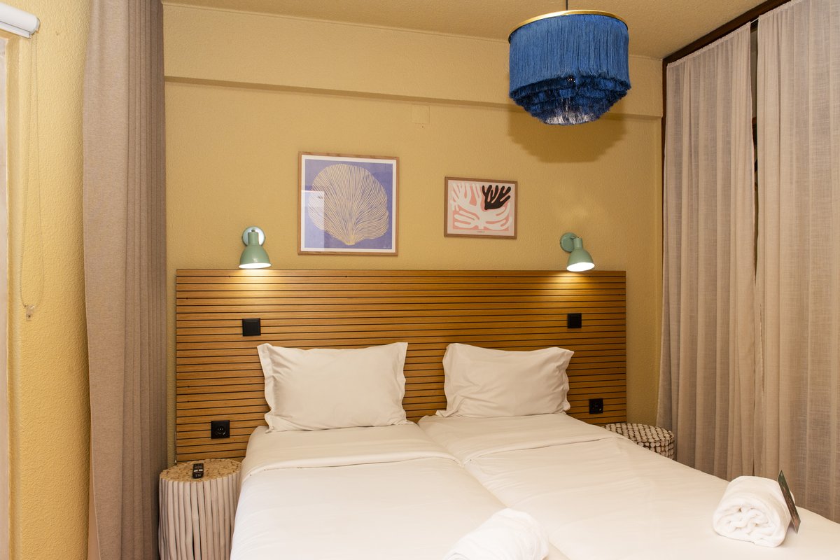 Desfrute de um retiro perfeito no nosso Quarto Duplo/Twin Standard! Com comodidades incluídas, este quarto oferece o ambiente ideal para uma breve pausa ou férias com o seu parceiro ou amigo. Inclui toalhas e produtos de higiene pessoal, bem como uma casa de banho privativa para o seu conforto. Decorado num estilo descontraído, proporciona um ambiente acolhedor com Wi-Fi, espelho e roupeiro para sua conveniência.