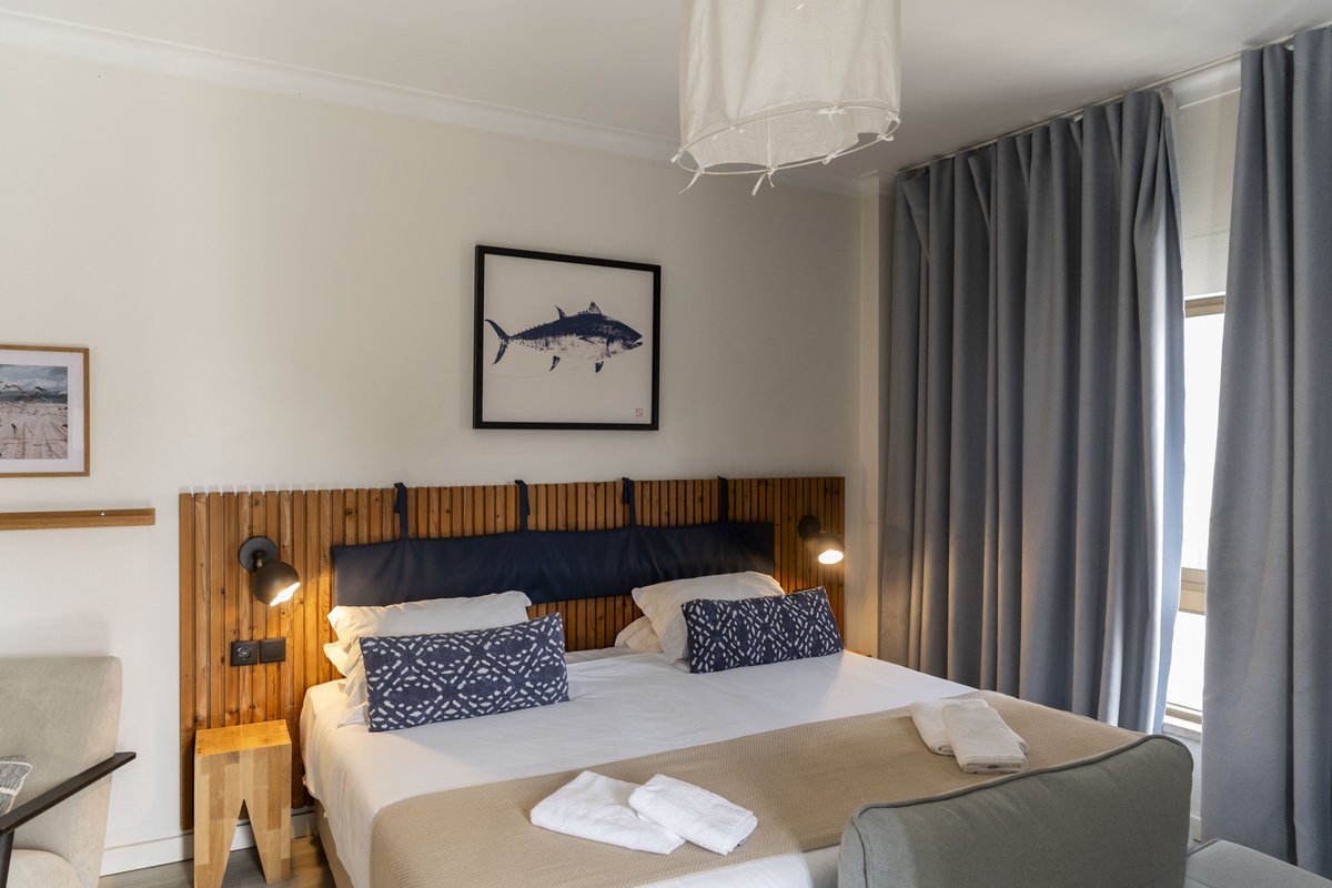 Quarto com capacidade para até 4 pessoas (cama de casal/duas camas individuais e um beliche), ideal para famílias e grupos de amigos. Todos os quartos estão equipados com televisão, ar condicionado e casa de banho privativa.