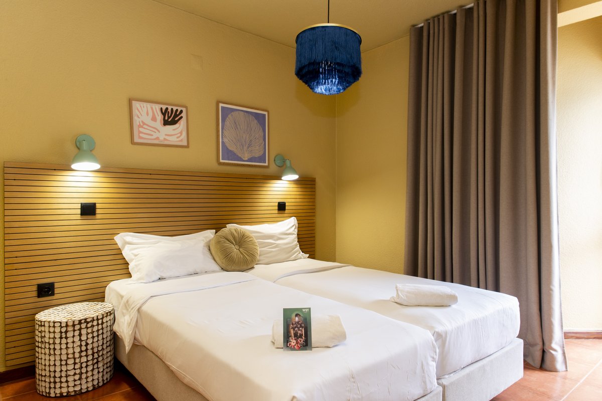 Aproveite o ar livre no nosso Quarto Duplo/Twin Standard com Terraço! Com comodidades incluídas, este quarto dispõe de duas camas individuais e um terraço onde pode apreciar a paisagem circundante. Relaxe no conforto da sua casa de banho privativa e aproveite a luz natural neste quarto acolhedor. Decorado num estilo descontraído, oferece um ambiente acolhedor com Wi-Fi, espelho e guarda-roupa para sua conveniência.